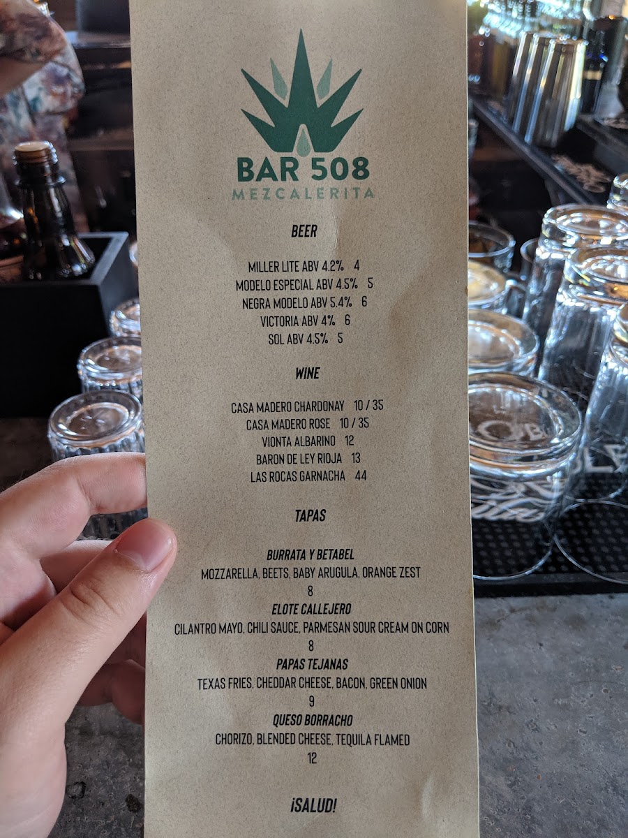 Introducing the menu at Bar 508 Mezcalerita, located in the heart of Austin, TX, is a delightful experience steeped in flavor and creativity.